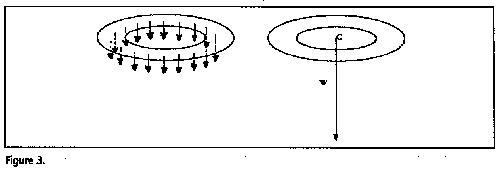 A common complaint about physics is that we do not explain why we are introducing certain concepts: we simply introduce them mathematically, without any justification. We may introduce the resultant as a tool of graphical calculation in an engineering drawing to find the combined effect of a set of forces, for example, or to simplify a problem. The most important example of the latter is weight thought of as a single force acting through the centre of gravity. The resultant weight is more convenient, both in explanation and in calculation, than the real weight, which is a force distributed over the whole body. This difference is brought out dramatically, for example, by the weight of a horizontal ring (figure 3). Another example is the reaction of a plane on the body it supports: in reality this is a force distributed over the undersurface of that body. We commonly replace it in thought, however, and on our diagrams, by its resultant represented as a single force acting on a point of the surface (figure 4).